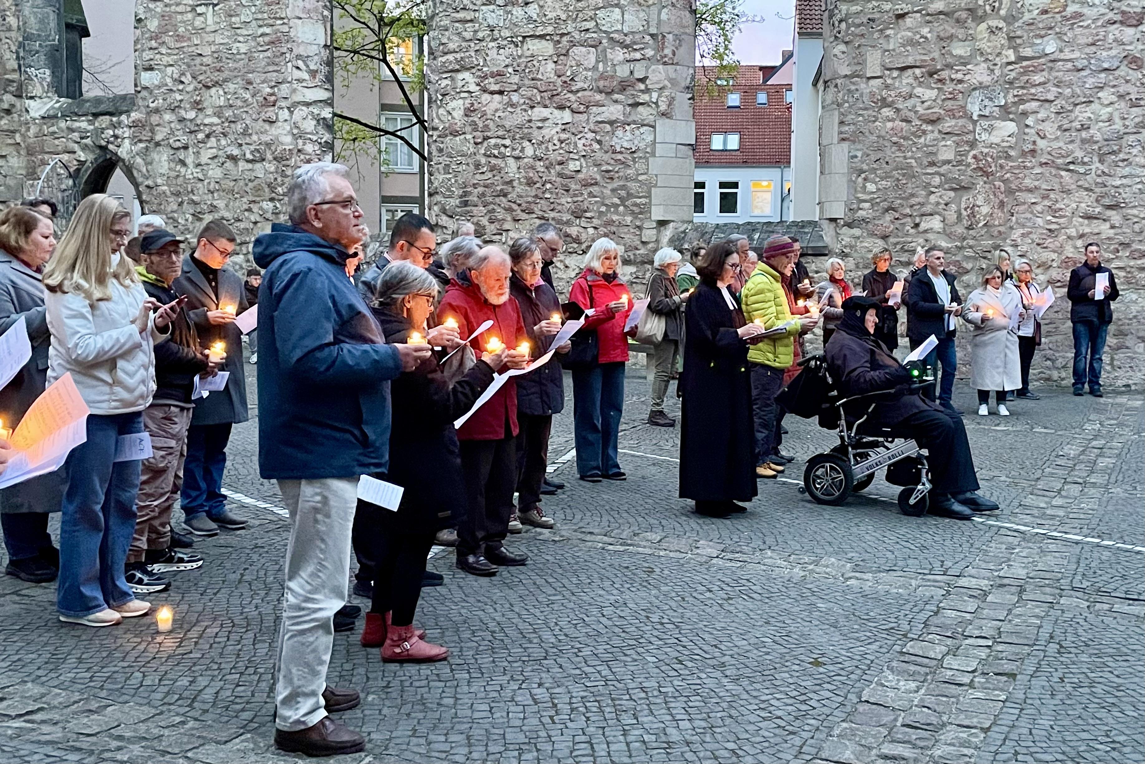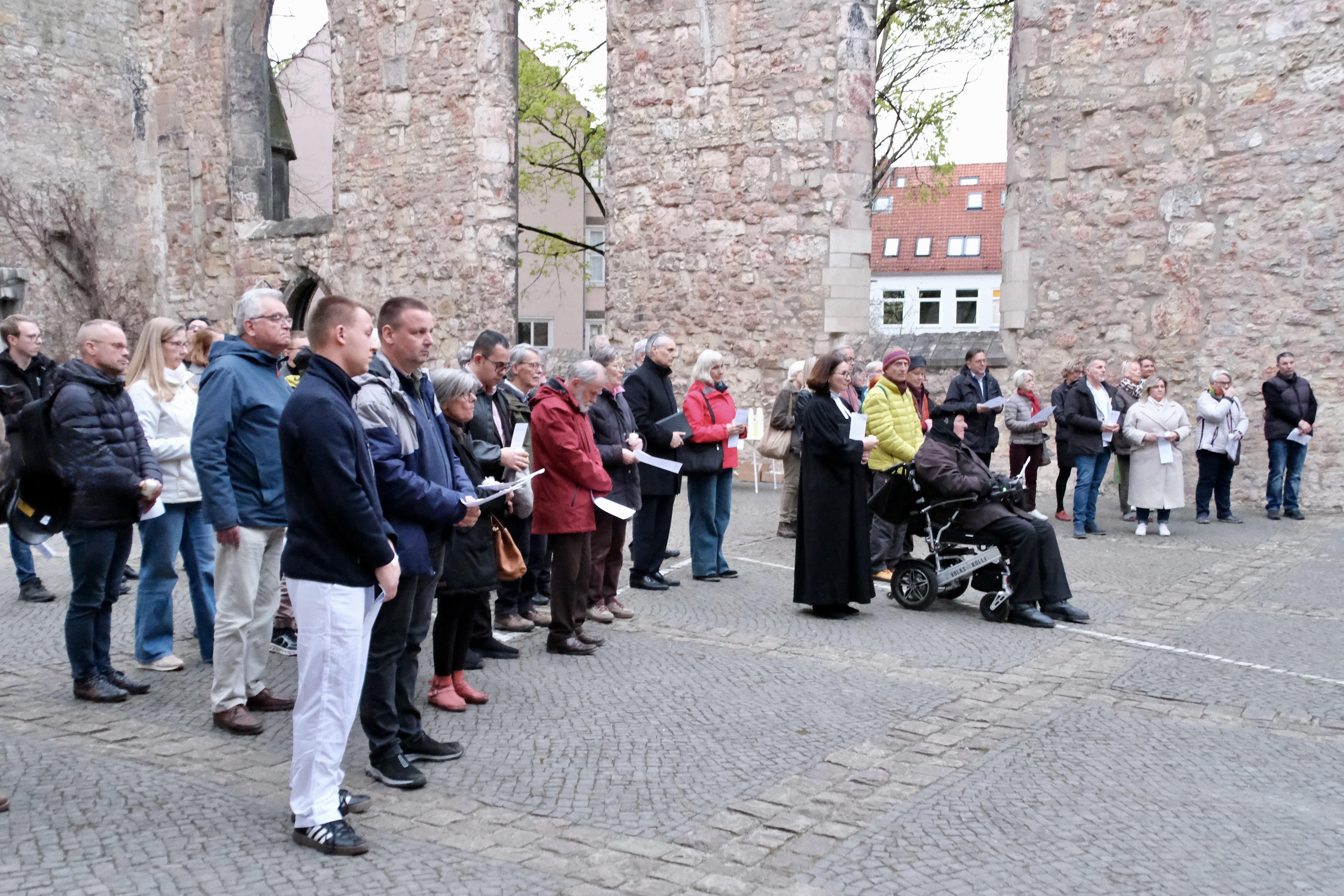 Umso erfreulicher war es, dass auch im Jahr 2026 ein gemeinsamer Termin für einen ökumenischen Ostergottesdienst gefunden werden konnte: der Tag, an dem die Ostkirchen in diesem Jahr Ostern feierten. In der eindrucksvollen Atmosphäre der Ruine der Aegidienkirche wurde es zu einem Fest in großer konfessioneller Vielfalt.