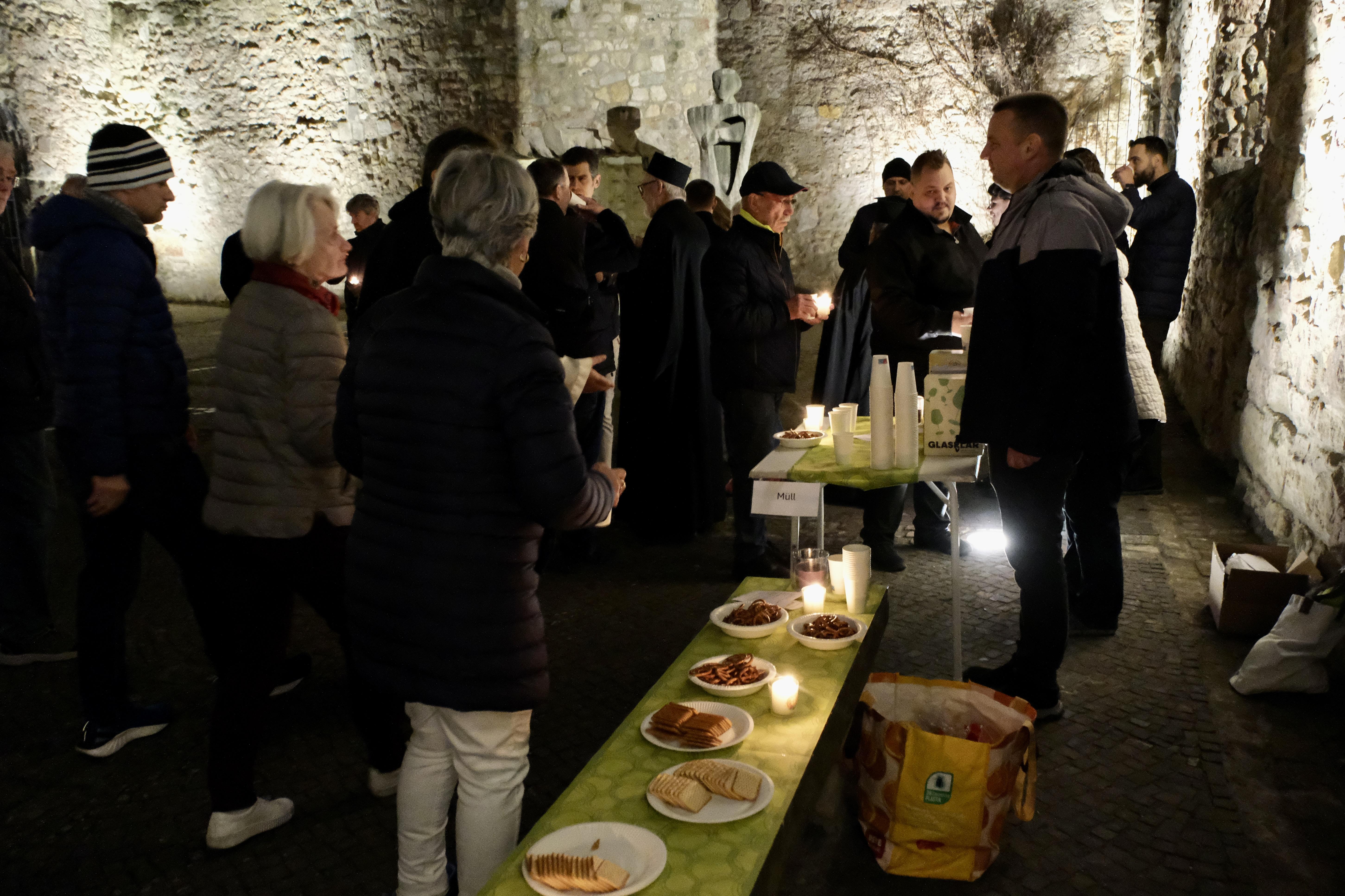 Im Anschluss waren alle Besucherinnen und Besucher eingeladen, bei einem Glas Wasser oder Wein und etwas Gebäck miteinander ins Gespräch zu kommen.